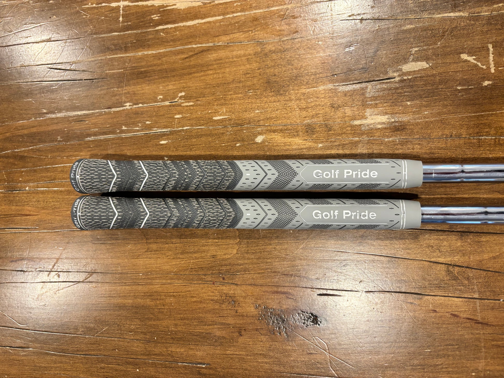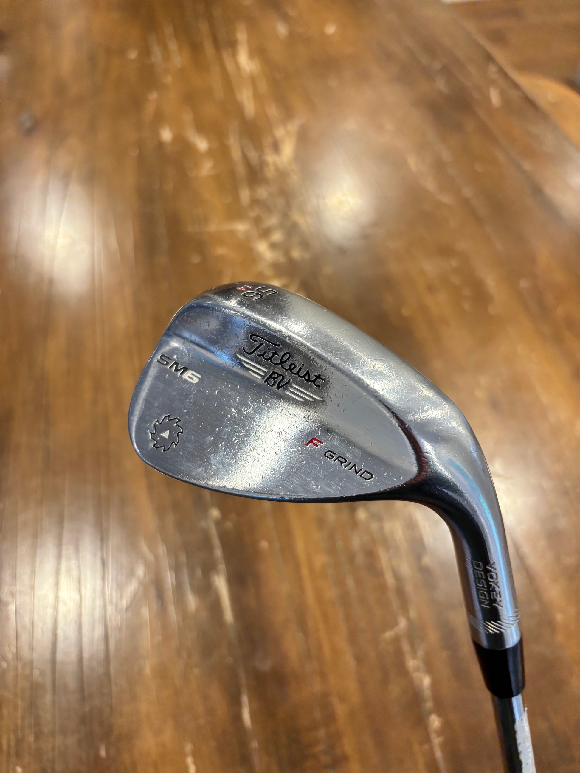Used Titleist SM6 Vokey wedges (56º & 60º). Clean faces with minor cosmetic wear, no dents or major scratches. Both come with standard regular flex shafts and midsize MCC4 Golf Pride Grips.